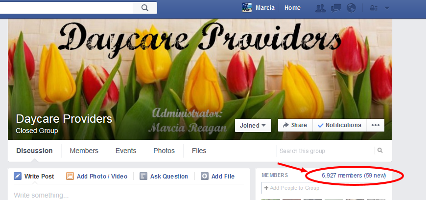 Marcia Reagan, creator of DaycareAnswers, is the administrator of the largest group on Facebook for daycare providers. As of September, 2015, the group has 7,000 members. Every one of them is guaranteed to be a provider!