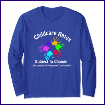 Just imagine the look on your daycare parents face when they read this message on your shirt. This should straighten up any attitude you're getting! LOL