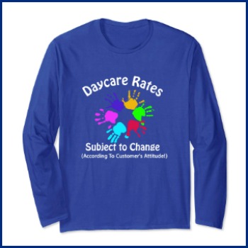 Just imagine the look on your daycare parents face when they read this message on your shirt. This should straighten up any attitude you're getting! LOL