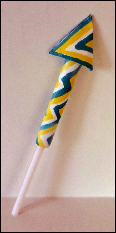 Using scotch tape, tape up one side of the trigular piece. Loosely wrap the rectangular piece around the straw and use scotch tape to fasten together. To prevent moisture from the kids blowing into from ruining the rocket, wrap a piece of tape around the top and bottom of the rocket piece.
