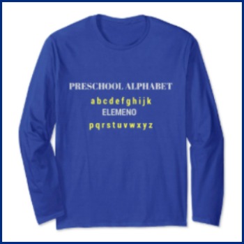 When preschoolers learn the alphabet, they're memorizing the sounds, not the actual letters. So this alphabet shirt is exactly what they are saying.