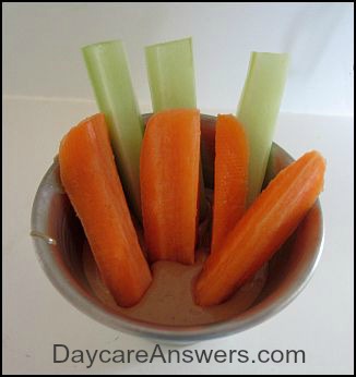 Pour into individual serving cups. Add the carrot sticks and celery sticks. Serve.