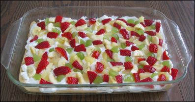Spread crescent roll on the bottom of a 13 x 9" pan. Bake at 325 degrees for 10 minutes. Let cool.