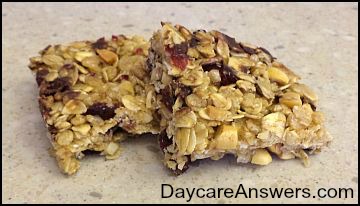 Pour mixture into the baking pan, using the back of the spoon to spread evenly. Cool for 30 minutes. Cut into bars and wrap individually in plastic wrap.