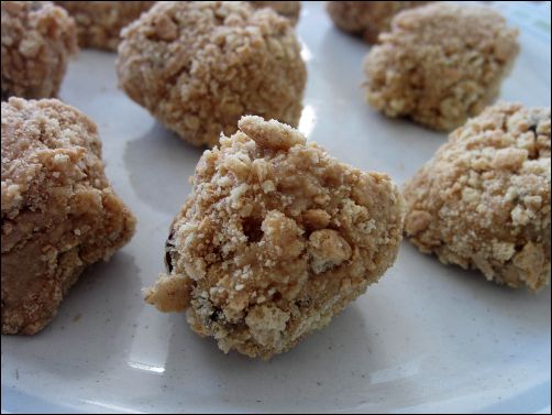 Mix the four ingredients together and form into 1" balls. Serve immediately. Stores well in an air tight container.