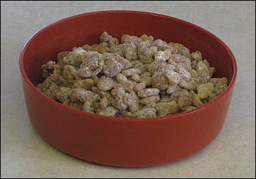 Put the powdered sugar in a large brown paper bag. Pour cereal mixture into the bag and shake to coat with sugar. Pour onto a baking sheet to cool.