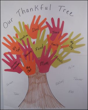 Have the children tell you things they are thankful for and write their answers on the leaves. For young children, you will have to explain what "thankful" means.
